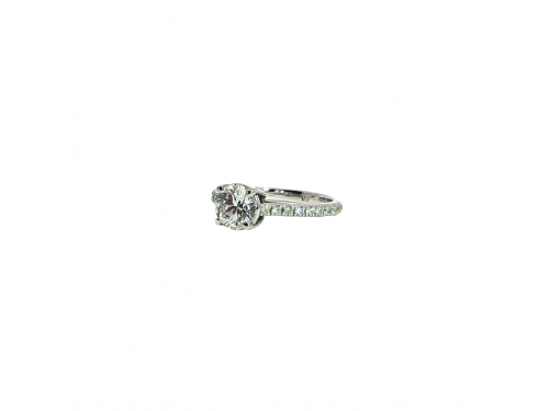 Класически годежен пръстен с единичен брилянт и брилянти по халката