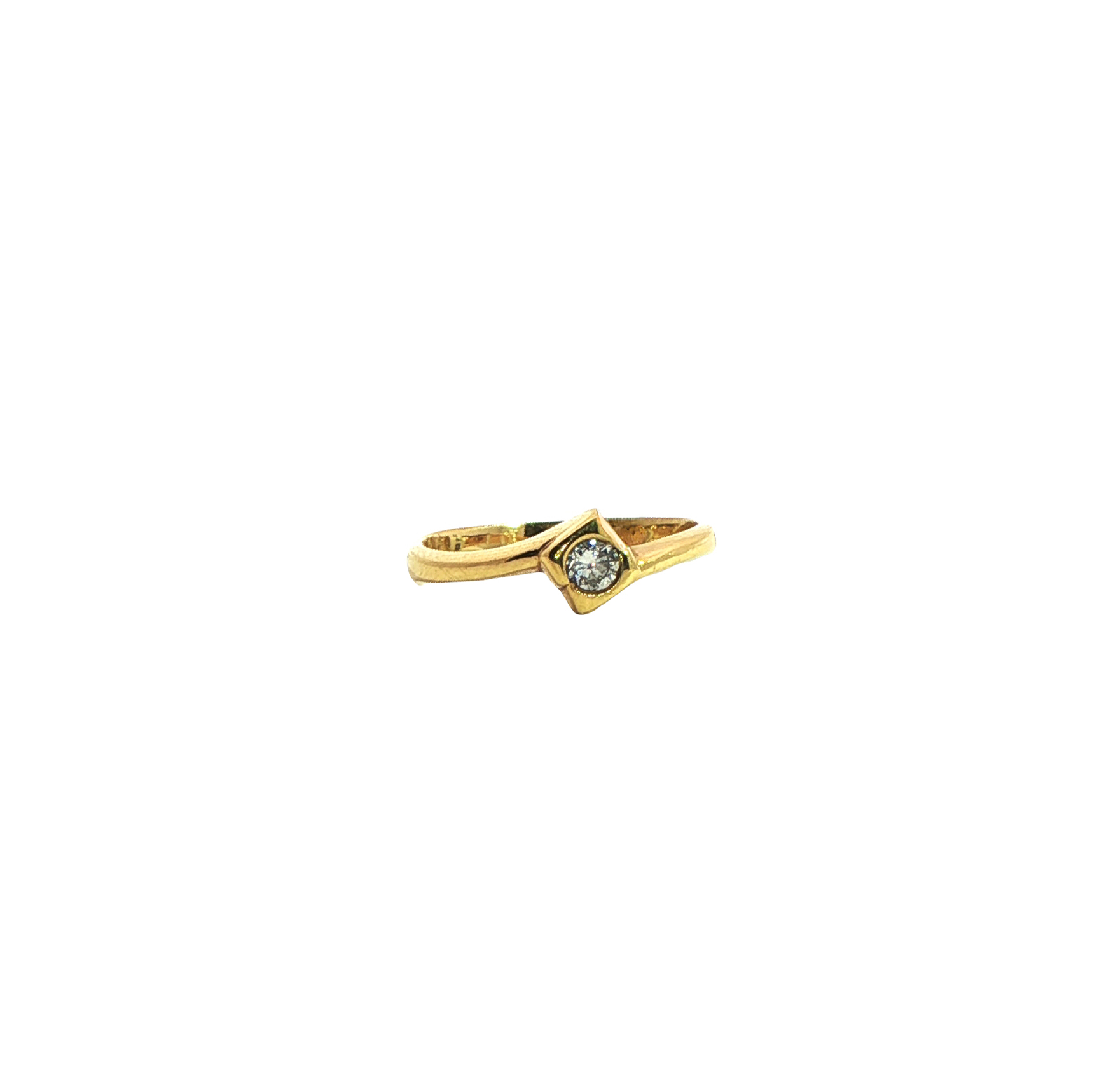 Изчистен годежен пръстен с квадратна каса в жълто злато