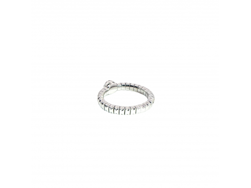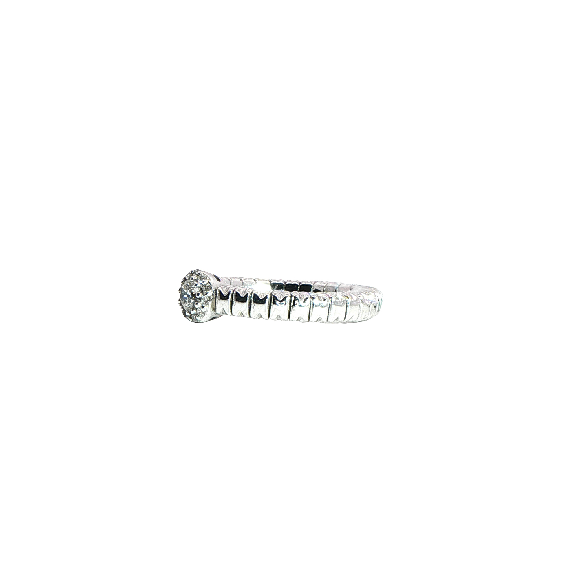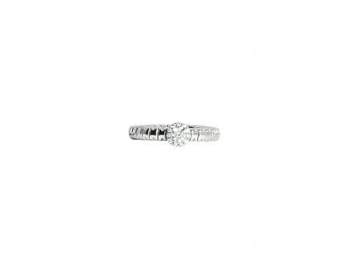 Нестандартен мек и еластичен годежен пръстен с централе диамант с ореол от диаманти