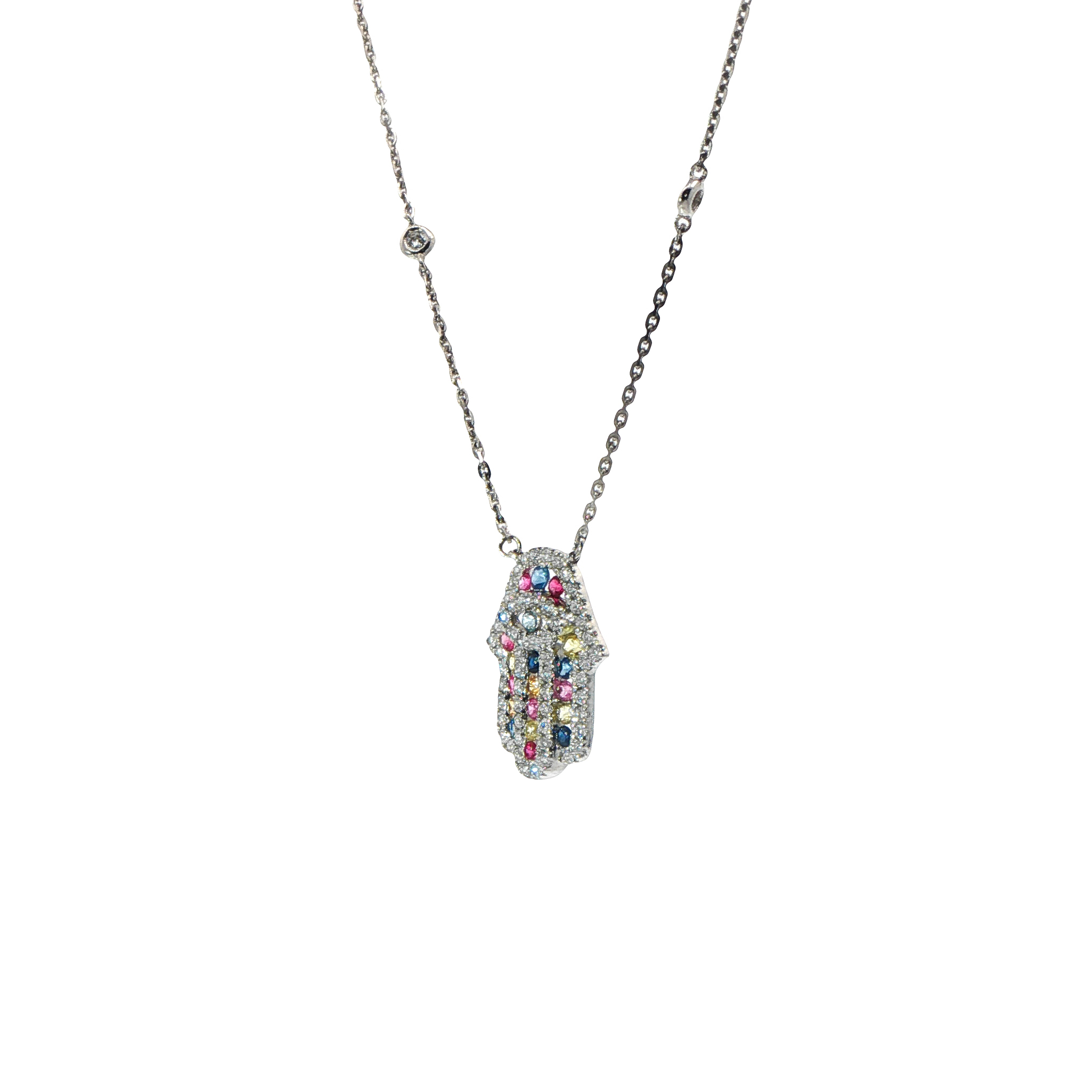Колие ръката на Фатима, с разноцветни сапфири, рубини и диаманти