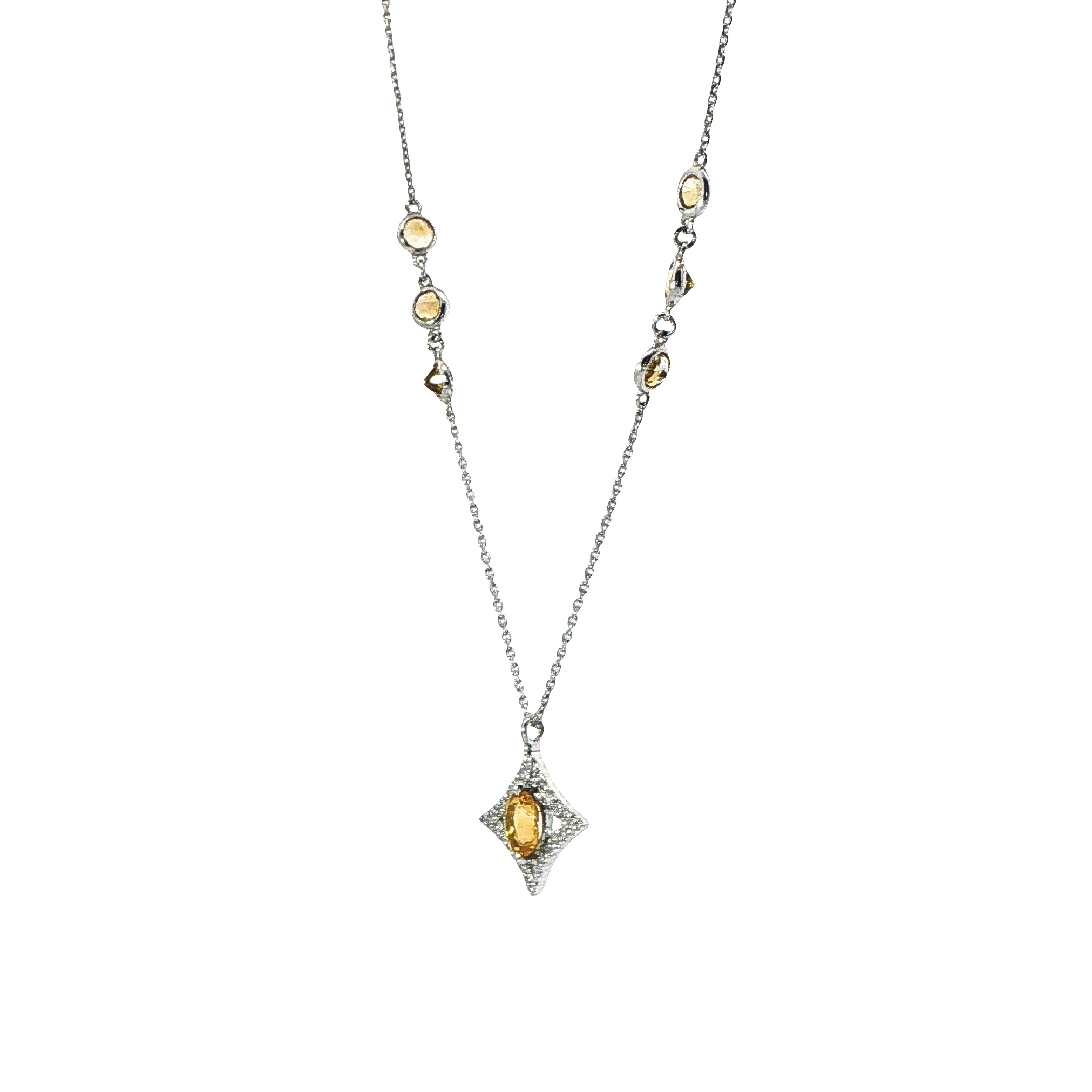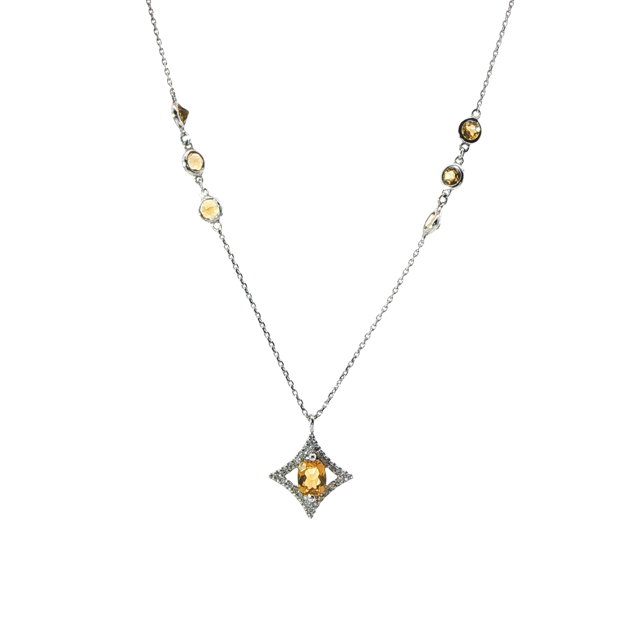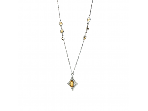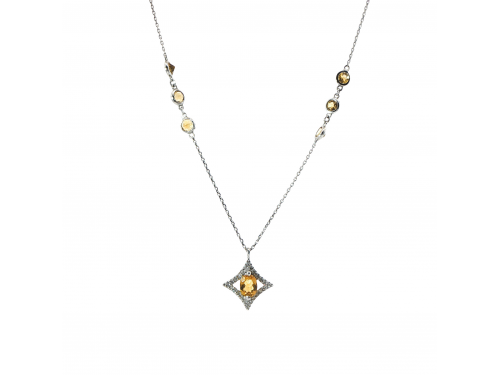 Колие диаманти и централен цитрин и с цитрини по верижката