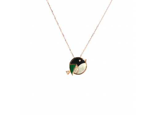 Колие с птица с оникс, малахит, седеф, и диаманти