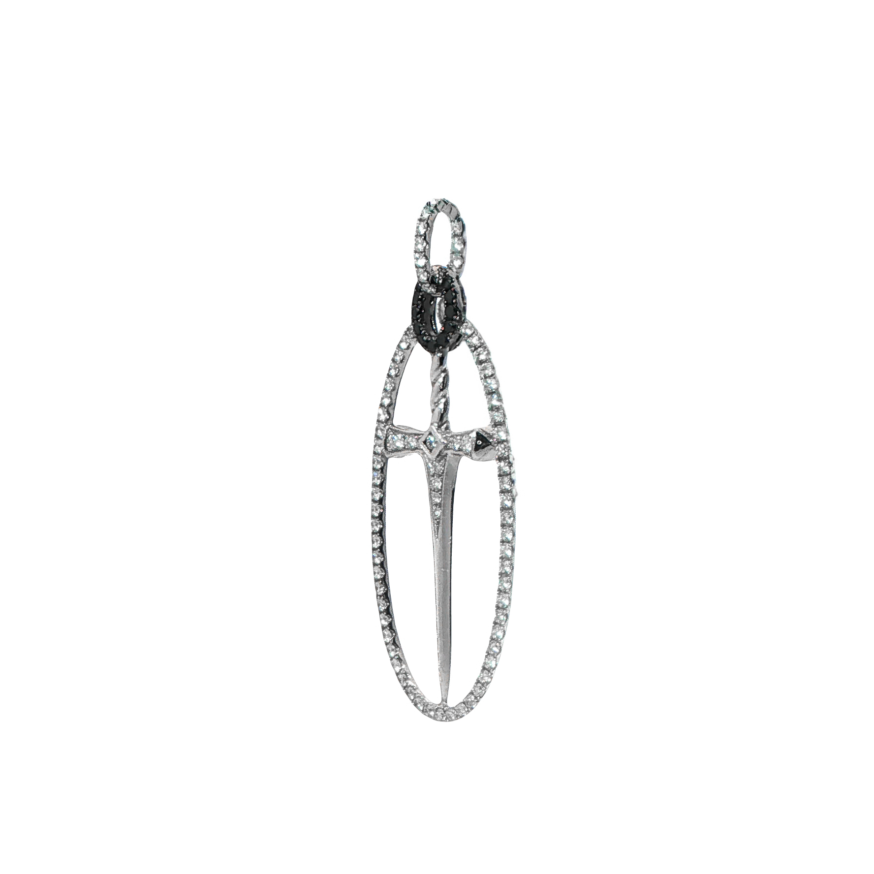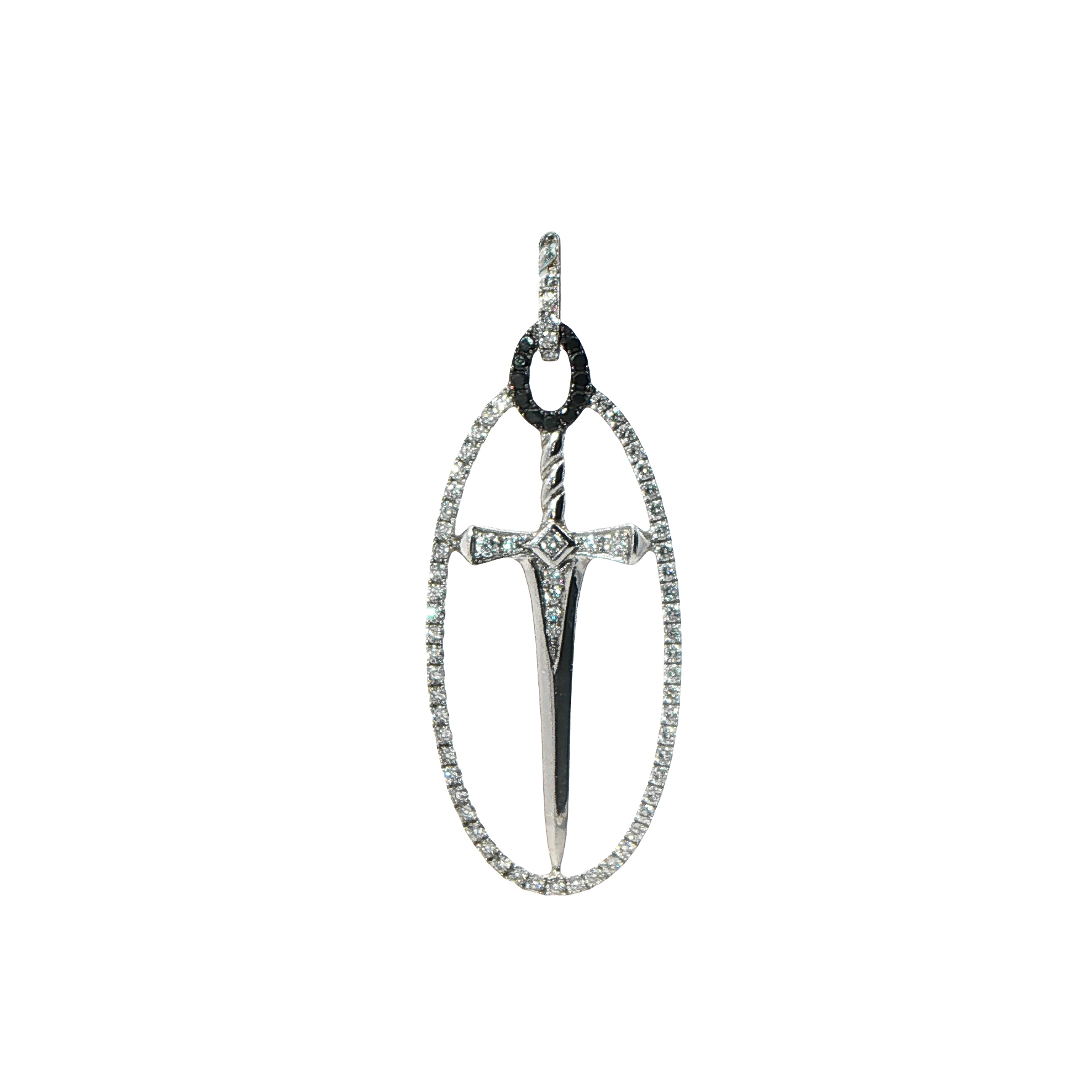 Медальон меч с бели и черни диаманти
