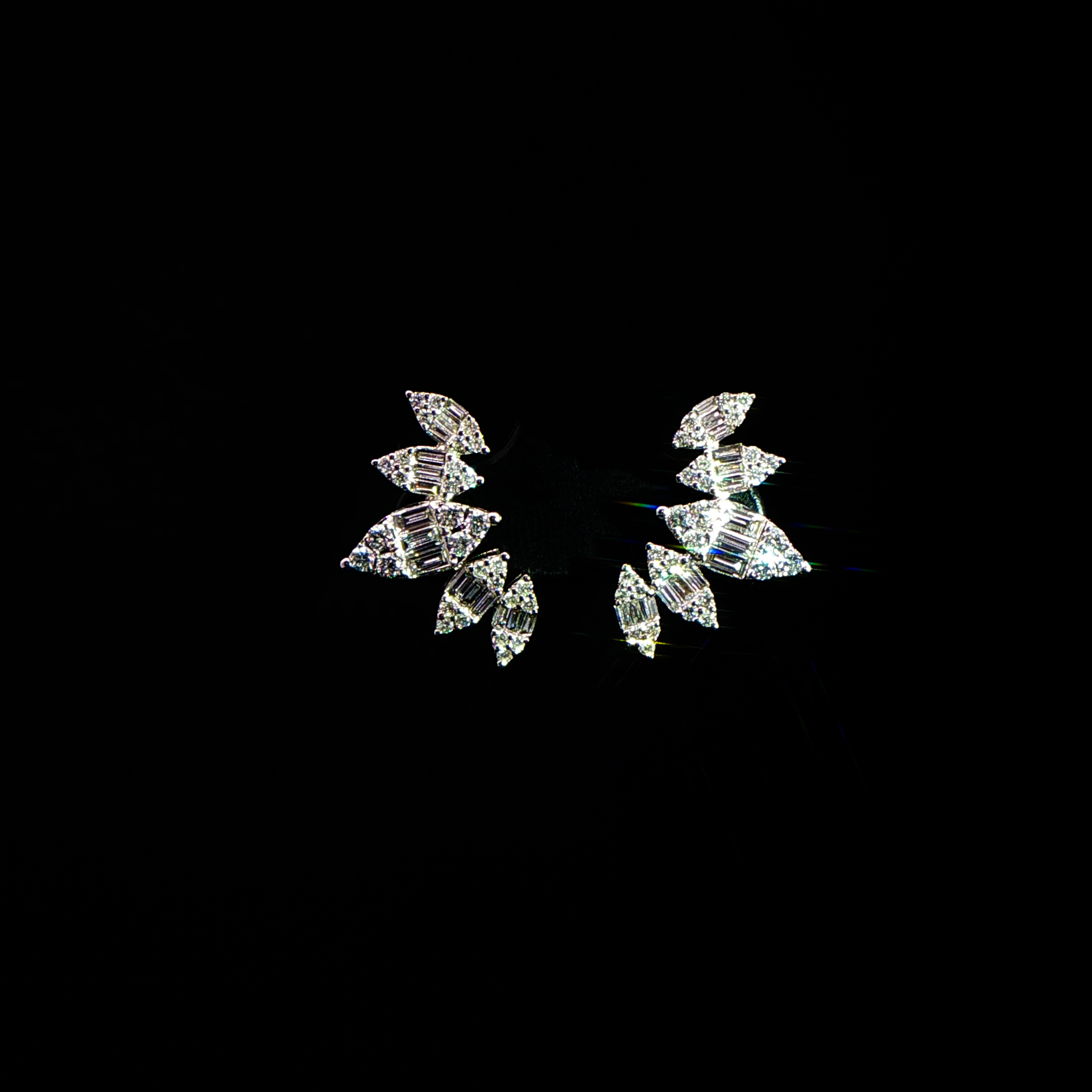 Изящни обеци по ухото, с общо 0.55 карата диаманти в 18к злато