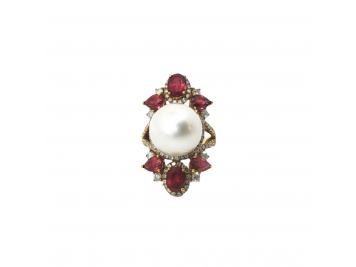 Пръстен с перла, рубини и диаманти