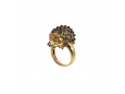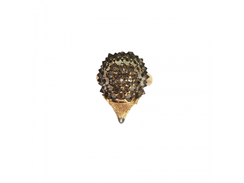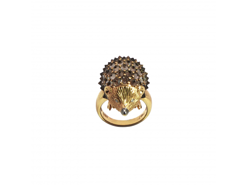 Пръстен по дизаин на SSG с таралеж с бодли от пушен кварц и диаманти в очите
