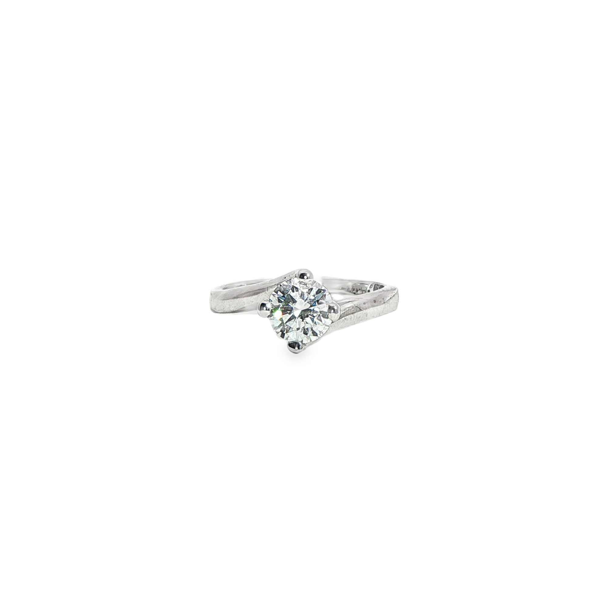 Класически годежен пръстен с еедин централен камък и извит детайл