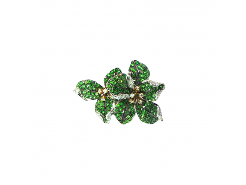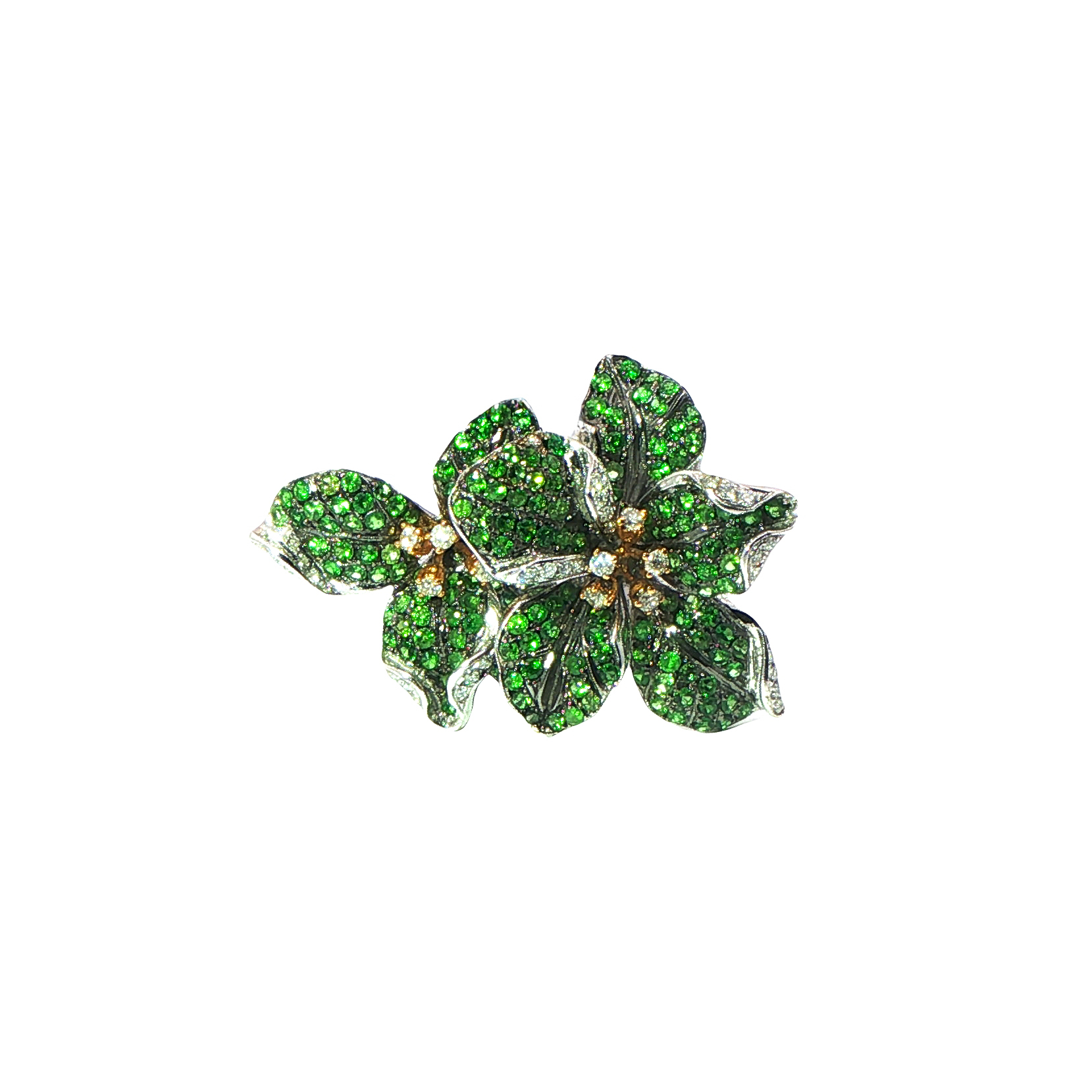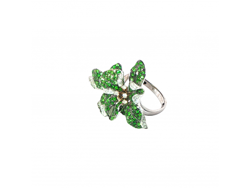 Пръстен с цвете от цаворити, с диаманти в тичинките