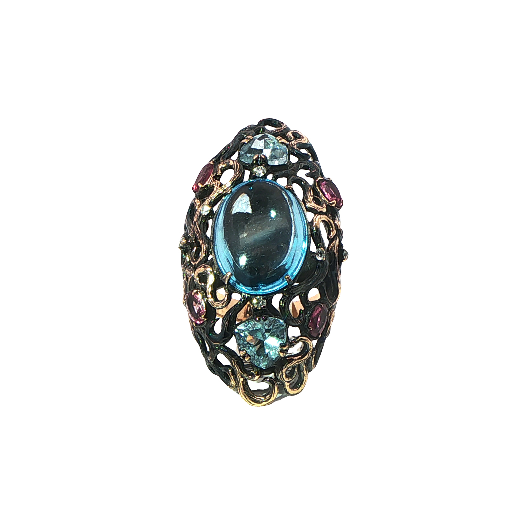 Пръстен със сини диаманти