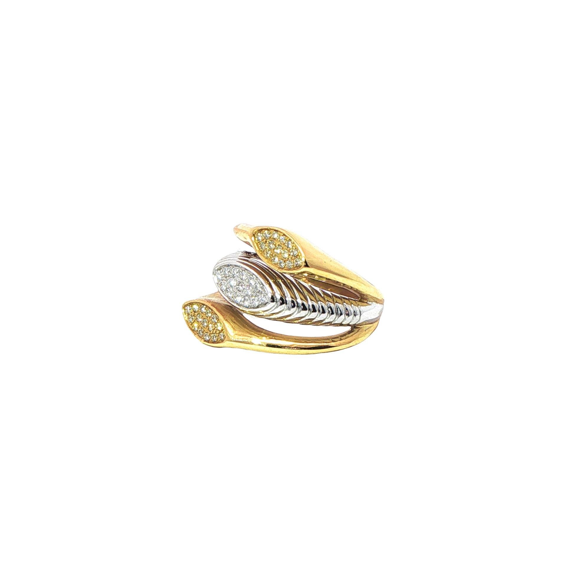 Троен фиксиран пръстен с диаманти с три цвята злато